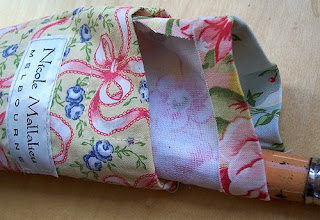 3. Fold all layers and press a crease 12cm from the edge that you'd like to have as the 'flap' on the case. I placed the large rose print carefully when I cut the rectangles so that it would be on the flap.