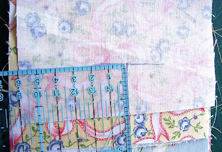 2. Layer the rectangles as if they're made into a purse - right sides of linings facing one another, with the 'outside' fabrics facing outwards on either side of the lining pieces.