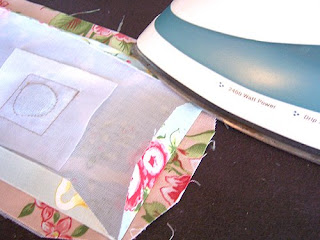 4. Keeping the fabrics layered in their "finished purse" position, lift up the first layer of the flap (the large rose print in this case) to reveal the wrong side of the flap lining.