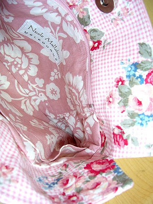 The lining includes a zip pocket and a compartment pocket that has this pleated section for a mobile phone (I hope that you can see it ....it photographs badly in this busy print!)