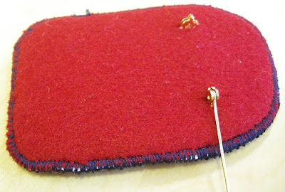 1. I fused the some dense felted wool fabric to Fast2Fuse and satin-stitched around the edges with a dense machine zig-zag stitch. (You could use any old felt or fabric, and you could even hand satin-stitch if you're so inclined).