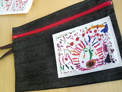 I appliquéd the LION drawing and made a denim pencil case (large style - to hold a ruler, calculator and notebook if necessary).