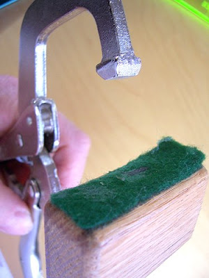 The clamp had a rounded end on it (??!) so I asked a metal-worker friend to grind it flat for me. The felt still fell off. Even hat felt and the strongest glues I could find couldn't stop the felt from breaking away after a few too many squeezes on frames.