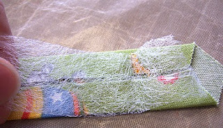 8. Place the Fast2Fuse strip in the centre of the fabric strip - starting a few mms back from the cut point (as shown above).