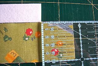 3. Cut a 2.5cm (1") wide strip of medium Fast2Fuse 4cm shorter than the fabric strip.