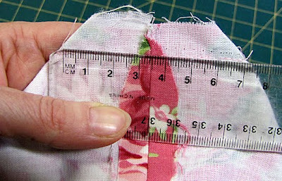 2. Round both measurements down by around 6mm (1/4 inch). For example, on the boxed corner seam below, I'd round down to 6.5cm.