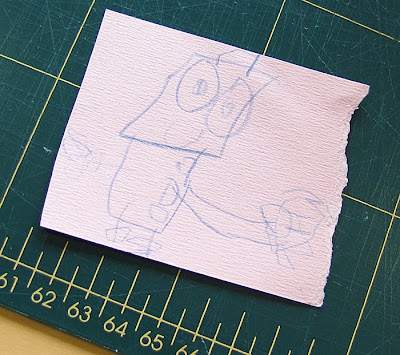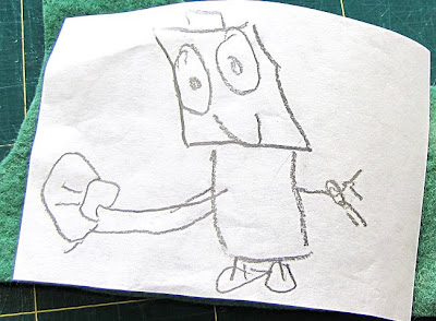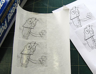 ..followed by the realisation that I'd printed on the SHINY side instead of the matt side of the freezer paper.... which led me back to basics. (Using a 2B pencil and a window, I traced the robot to the matt side of the freezer paper).