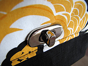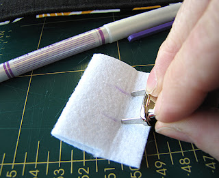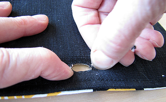 8. Push the twisty bit (that's the technical term, isn't it...?) of the lock from the right side of fabric, through the slits in the bag body.