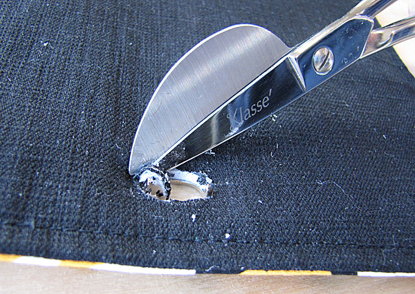 TIP: If the sharp edges of the prongs are going to damage the bag lining, you might like to add a layer of Vilene S520 or Peltex on the back, as shown here for magnetic snaps. I haven't bothered with that here.