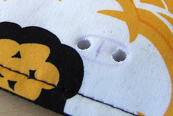 11. Using the top plate as a guide, centre the hole over the placement mark on the front of the flap and trace it through with a fabric marker.