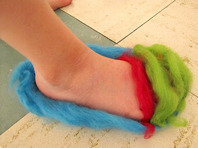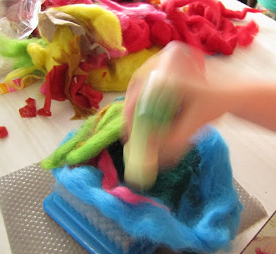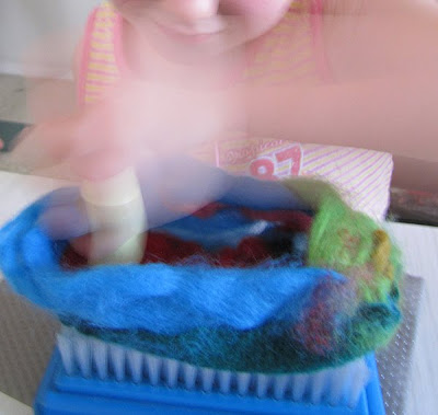 She insisted that she knew how to needle-felt slippers and set to it, determinedly..... I just watched ...like a hawke (the kind that reminds kids to keep their fingers out of the way of sharp, jabbing needles).