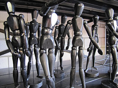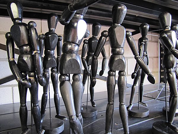 and a crowd of little black artists mannequins.