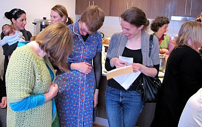 And the finer points of patchwork skirts were discussed. (You can spot a group of craft bloggers anywhere!!)Cathie did an AMAZING job to coordinate and cater for the event. Lots of wonderful people chipped in with prizes and donations, 30-plus women came along to enjoy the afternoon and nearly $900 was raised. Great day!