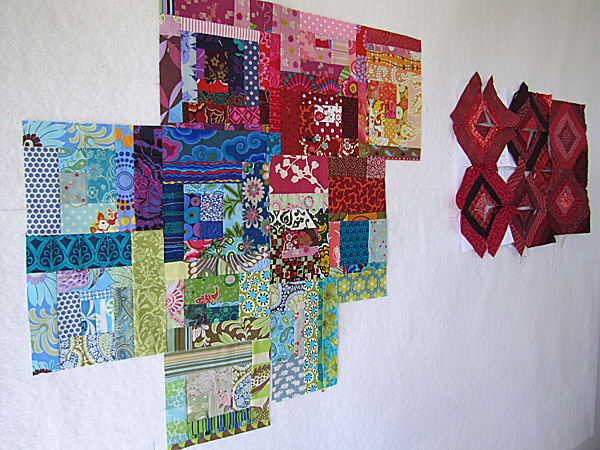Megan was paper-piecing an amazing shades-of-red piece, which I failed to photograph adequately.