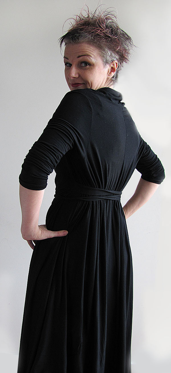 I can't normally do long black and voluminous dresses without looking like a little pile of black fabric. (When you're 5'1"-and-a-bit, you need a bit of body reference). I like the way this one skims but still hints at a person inside the volume of fabric.And I can do the ties up at the front and pretend to be some sort of Raphael cherub (completely ignoring the glaringly obvious grey hair and wrinkles.. and the dress, come to think of it...).