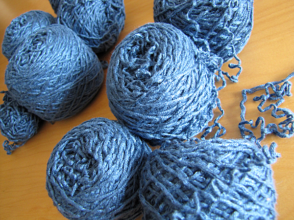 There was the big decision to crochet the last precious skein of the hand-painted linen yarn into something wearable for summer. There was the use of a swift (and almost eight hours less untangling than last time) and the winding of a big, beautiful ball... which I think I'll just look at for a bit longer, before working with it.The rest of Friday evening was spent unpicking dodgey seams, ripping out knitting and re-winding the blue dress into many small balls of yarn (from whence it came). The dress was so very nearly right, but far from perfect. I'm going to rework it, and hope that this time I get it closer to just right.