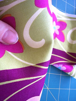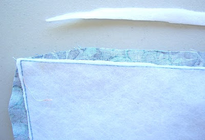 1. Pull the wadding and interfacing away from the seam allowance. 2. Trim off the interfacing as close to the stitching line as possible. ("You could use your duckbills for that", as my wee girl would advise. Nothing like a two-year-old who knows her sewing tools, huh?).