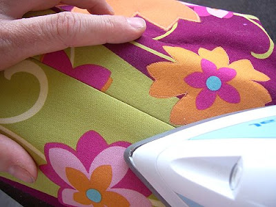 OOPS....This is what happens when you press delicate interfacing with a searing, steaming, linen-setting iron. It shrinks and bubbles - rippling the fabric up. If you do this in the EARLY stages of cutting and fusing you can rip the interfacing off, press the fabric and fuse a new piece of interfacing on. When you're half-way through making the bag up you just have to try to fix things up as best you can.