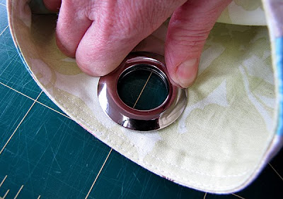 1. I fused the some dense felted wool fabric to Fast2Fuse and satin-stitched around the edges with a dense machine zig-zag stitch. (You could use any old felt or fabric, and you could even hand satin-stitch if you're so inclined). 2.I fused the printed fabric to light interfacing and wadding and zig-zagged it onto the felted wool - using basting spray to hold it together while I stitched.